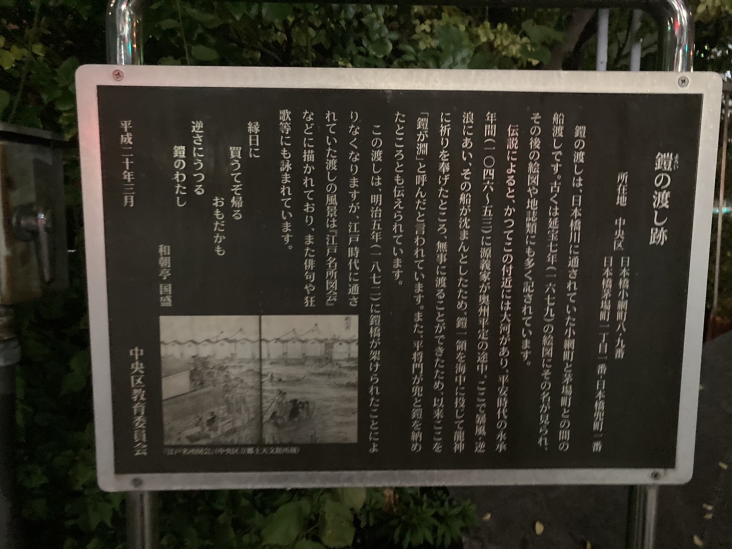 上に掲載した写真は「鎧の渡し」にあるお江戸日本橋お散歩マップです。
