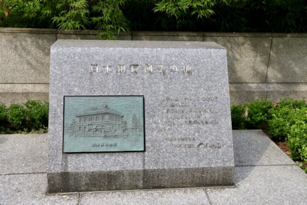 日本銀行は、明治15年10月にこの地で創業し、明治29年4月に日本橋本石町へ移転しました。
