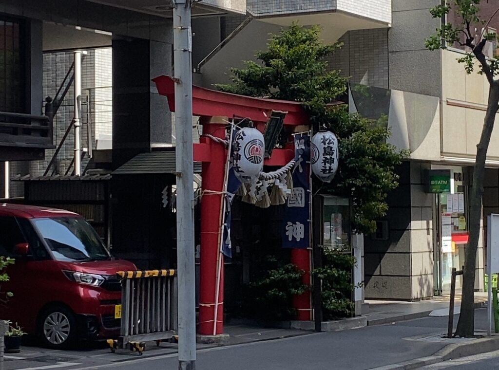 日本橋の松島神社は、ビルの1階部分にひっそりと鎮座している近代的な神社です。
