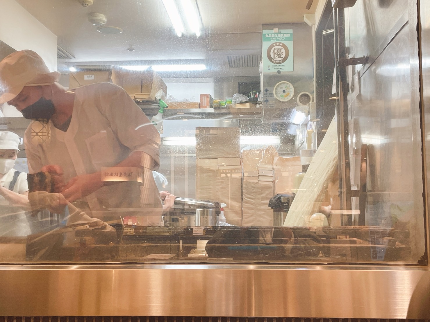 外から店員さんが焼いている姿が見えるのでワクワクしますね!!
