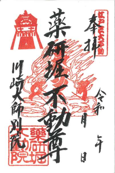 神奈川県川崎市にある「川崎大師平間寺」の別院であり、興教大師(こうぎょうだいし) 覚鑁上人(かくばんしょうにん)敬刻の不動明王さまが祀られています。